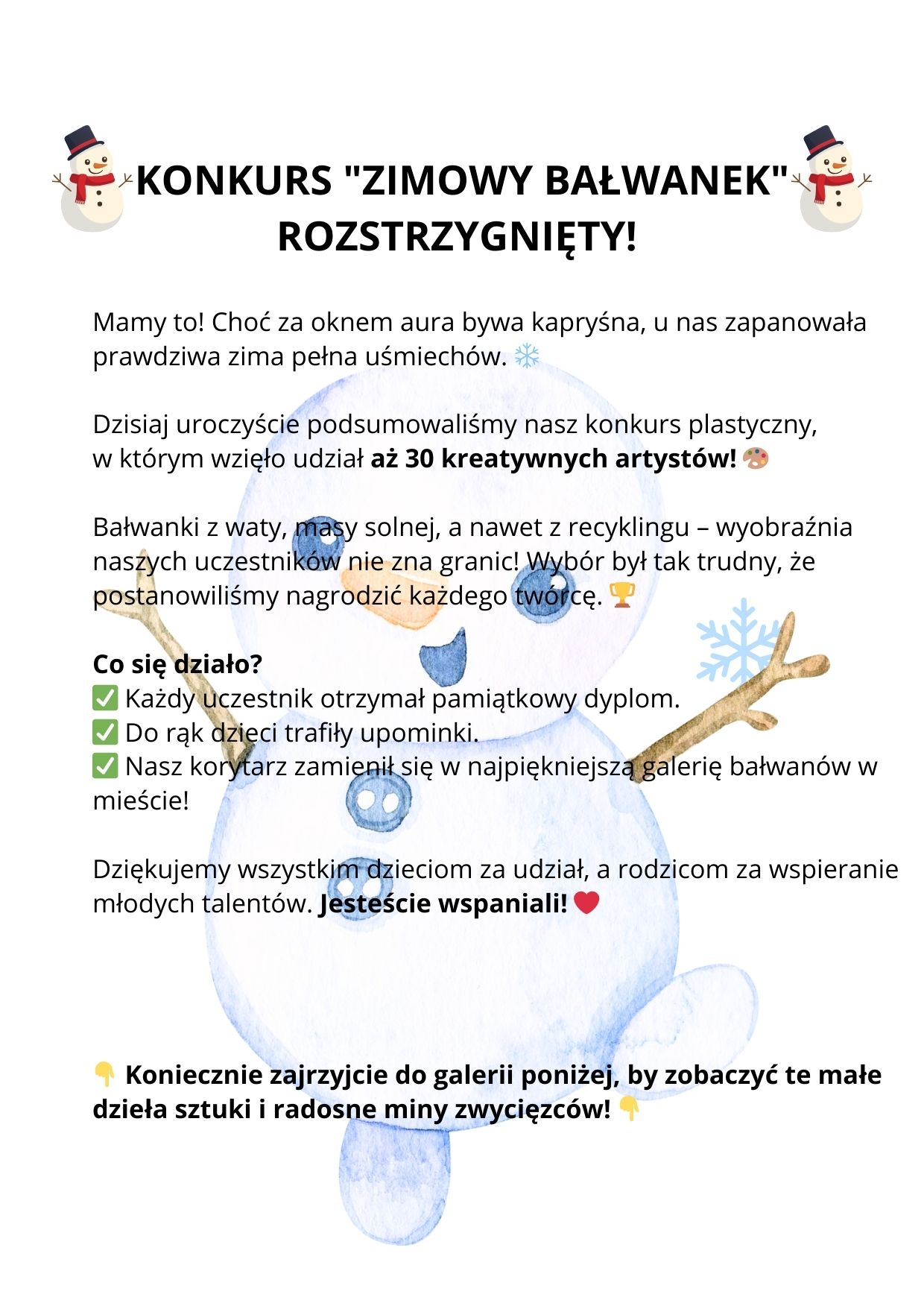 Serdecznie dziękujemy wszystkim uczestnikom konkursu plastycznego.
